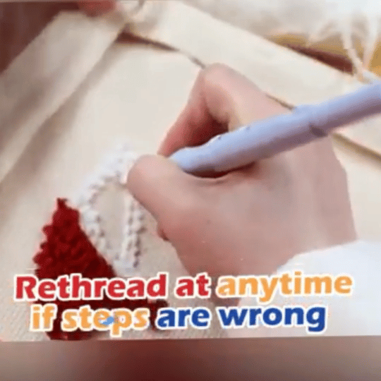 No need to worry about the wrong steps because you can rethread at any time. And Punch needle kits are reusable.