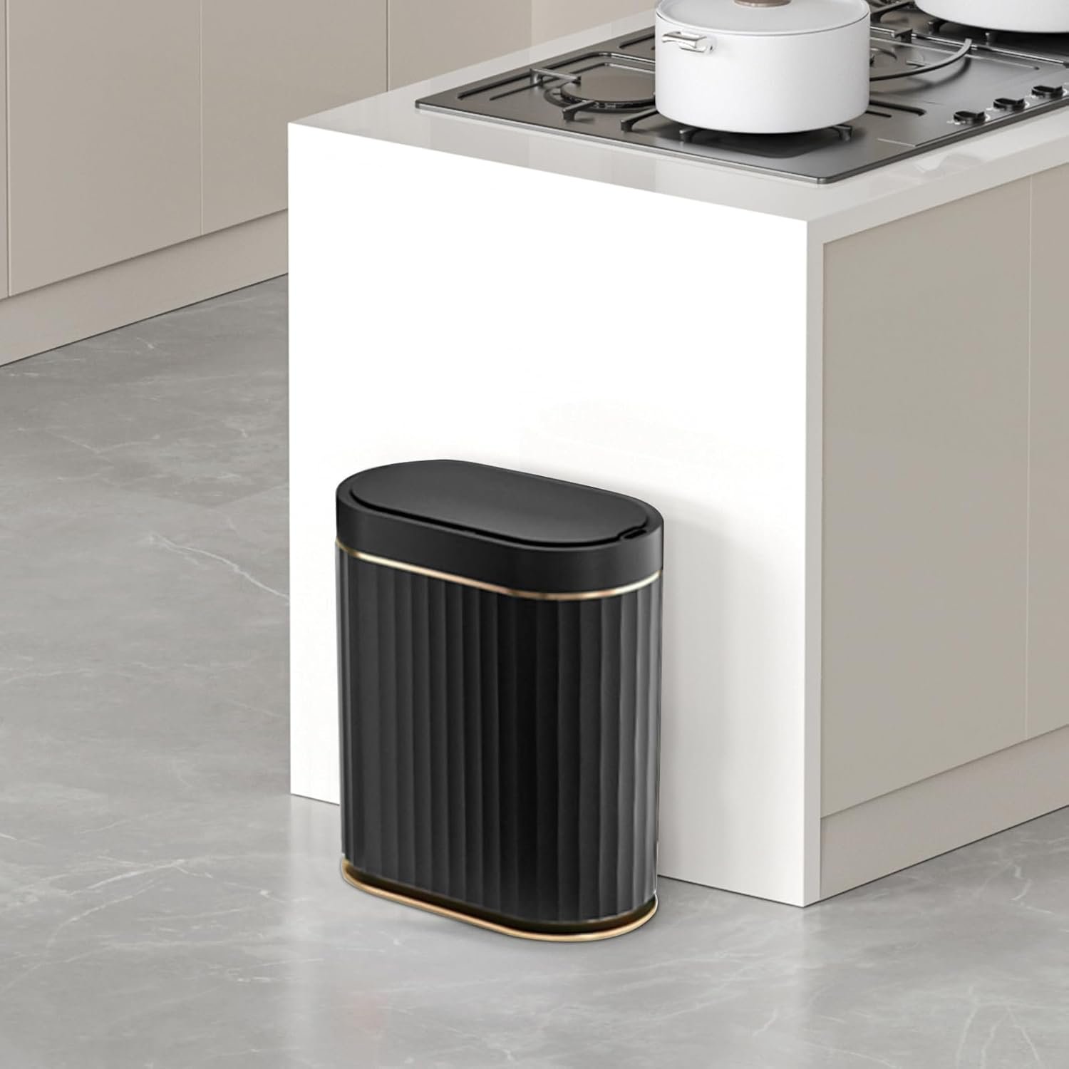 - Black Exterior Design – The elegant black color not only makes your trash can less likely to look dirty. but also fits into any style of home for a distinctive decorative piece. (11”L×7”W×12”H. 2 Gallons)