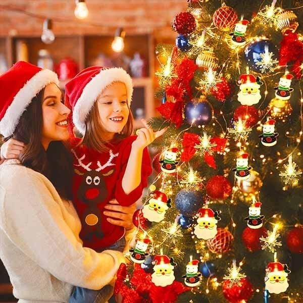 • Add to Festive Atmosphere: these battery operated snowflake lights combine with various Christmas elements. including snowman. Santa Claus and snowflakes. pretty and adorable. which is easy to match with your Xmas parties. increasing more warm atmosphere.