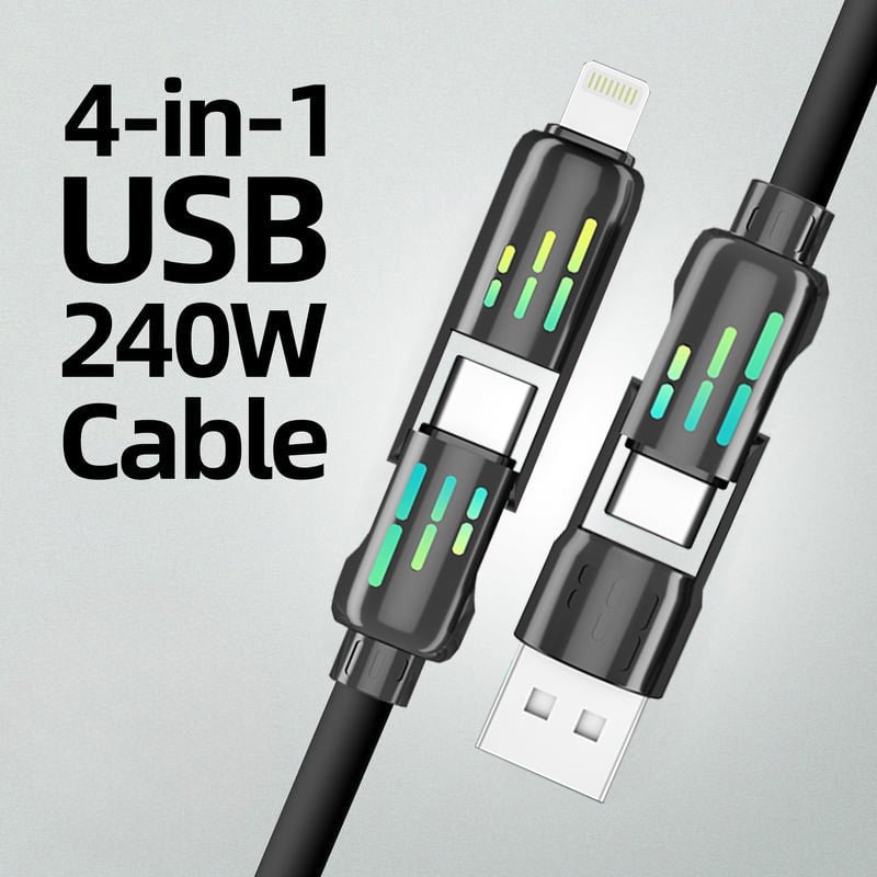Charge your devices faster than ever with the MFish 4-in-1 USB C Cable 240W. This USB 2.0 Type C cable is compatible with iPhone 15/15Pro/15Plus/15ProMax MacBook. iPad and other electronic devices.
