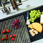 - RINSE & DRY: Rinse produce and dry stacks of dishes while keeping the mess over the sink and off of your countertops