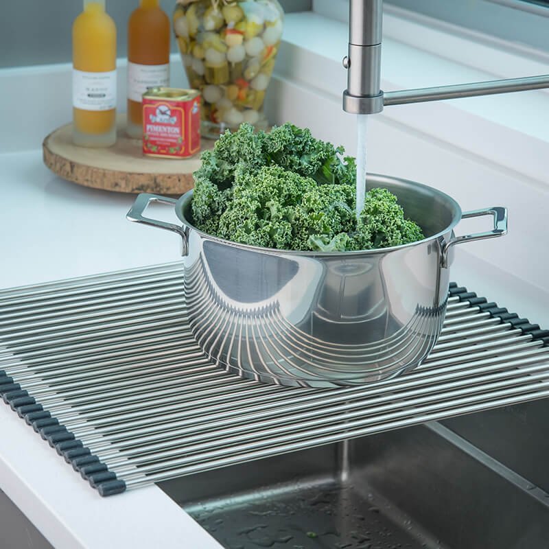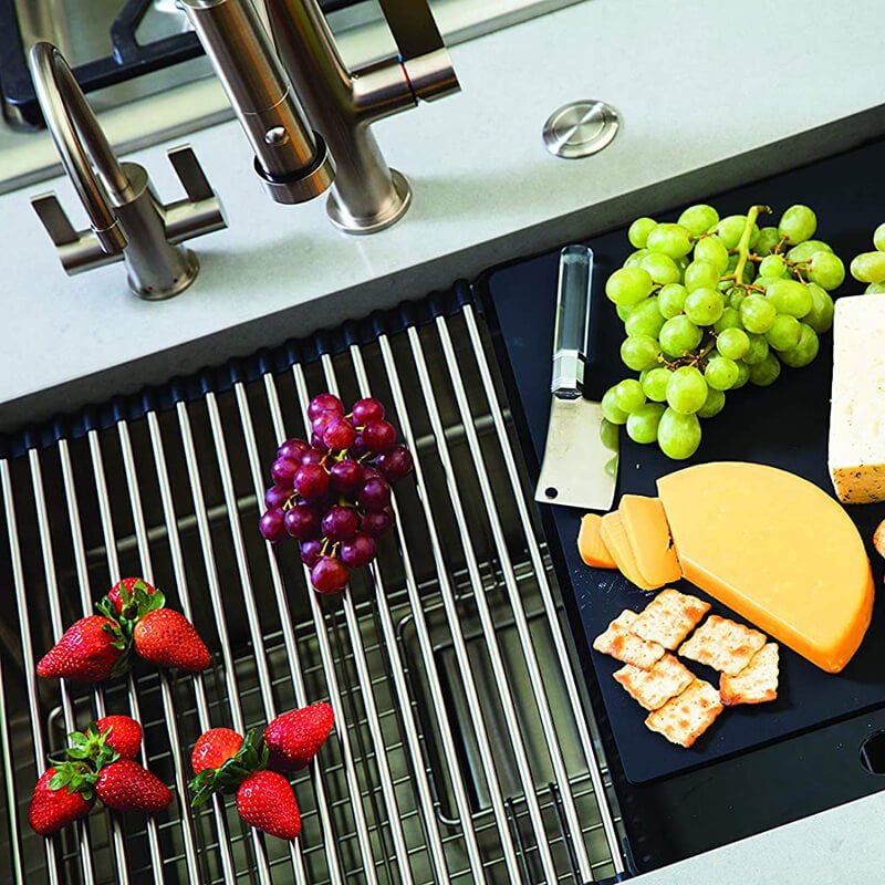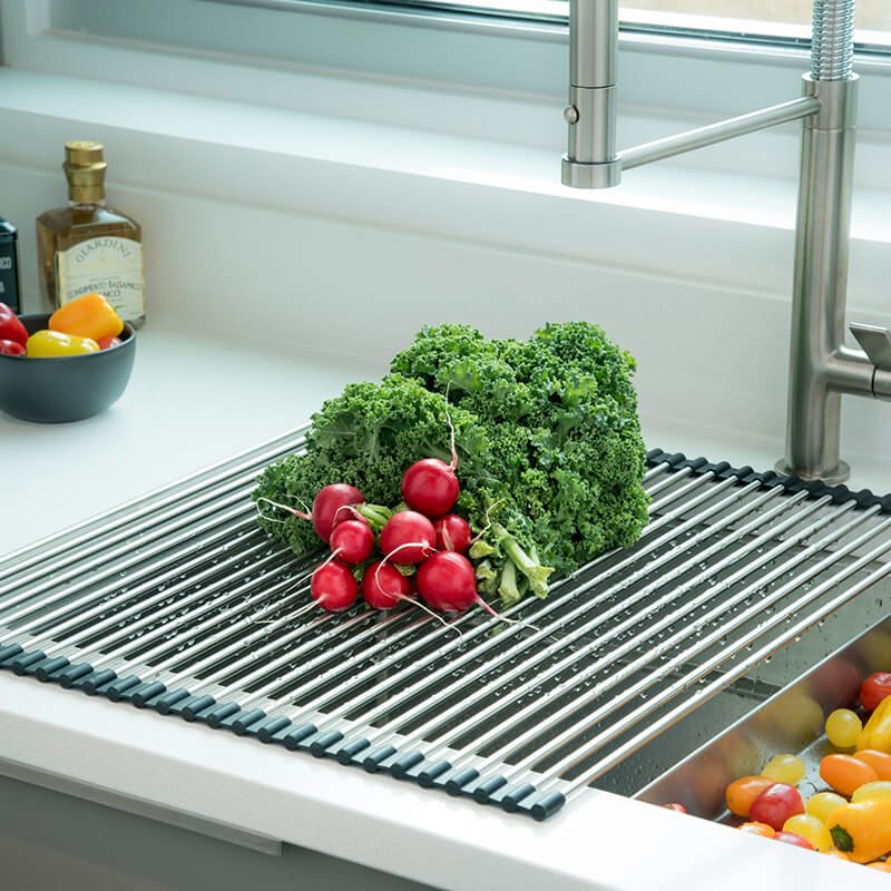 Perhaps the most all-around versatile kitchen accessory. the Cookit Multi-Purpose Roll-Up Dish Drying Rack is the Swiss Army knife of the kitchen. helping with everything from food prep to clean-up.