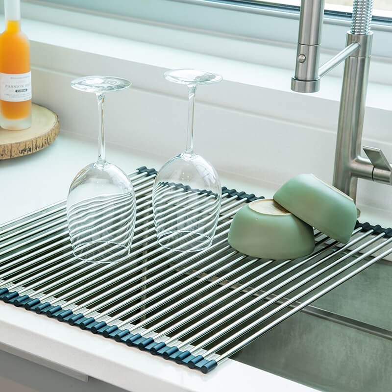 - EASY TO CLEAN & STORE: Dishwasher-safe drying rack can be rolled up for easy cleaning and tucked away after use