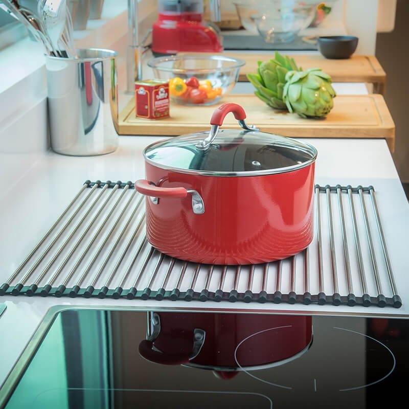 The hardest-working accessory in your kitchen: Try out our multi-functional roll-up dish drying rack. and you’ll wonder how you ever went without it!