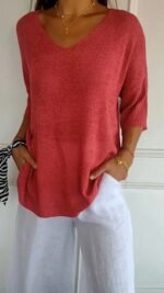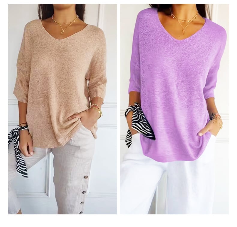 • Package includes: 1 X Solid Color Knitted V-neck Top